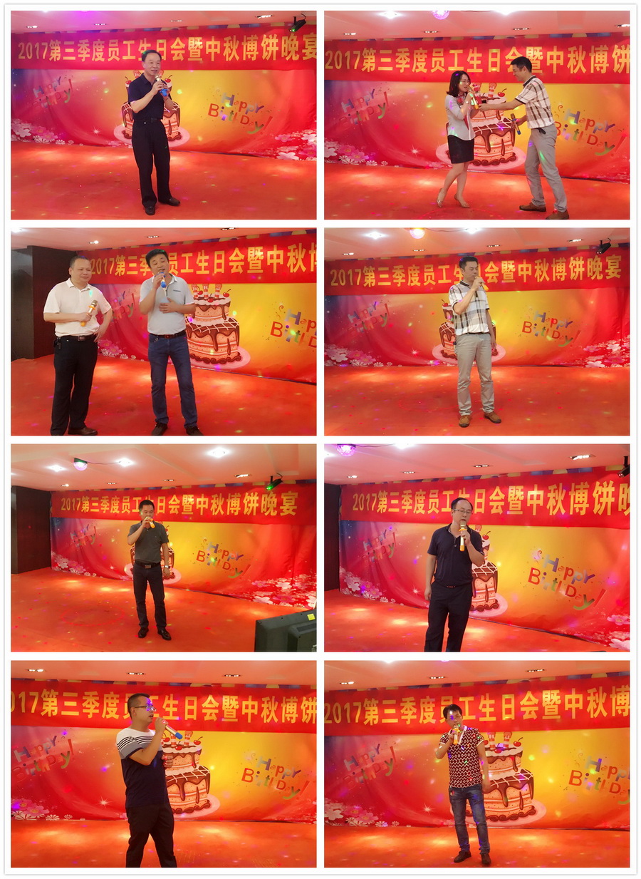 金秋九月,它不僅給我們帶來(lái)了涼涼的秋意,還為我們迎來(lái)了中國(guó)傳統(tǒng)節(jié)日——中秋佳節(jié)。2017年9月29日晚,在公司行政人事部的統(tǒng)一部署下,“2017第三季度員工生日會(huì)暨中秋博餅晚宴”的聯(lián)歡活動(dòng)在公司七樓多功能廳開(kāi)展。同時(shí),次日人力行政中心還精心組織開(kāi)展集體活動(dòng)。